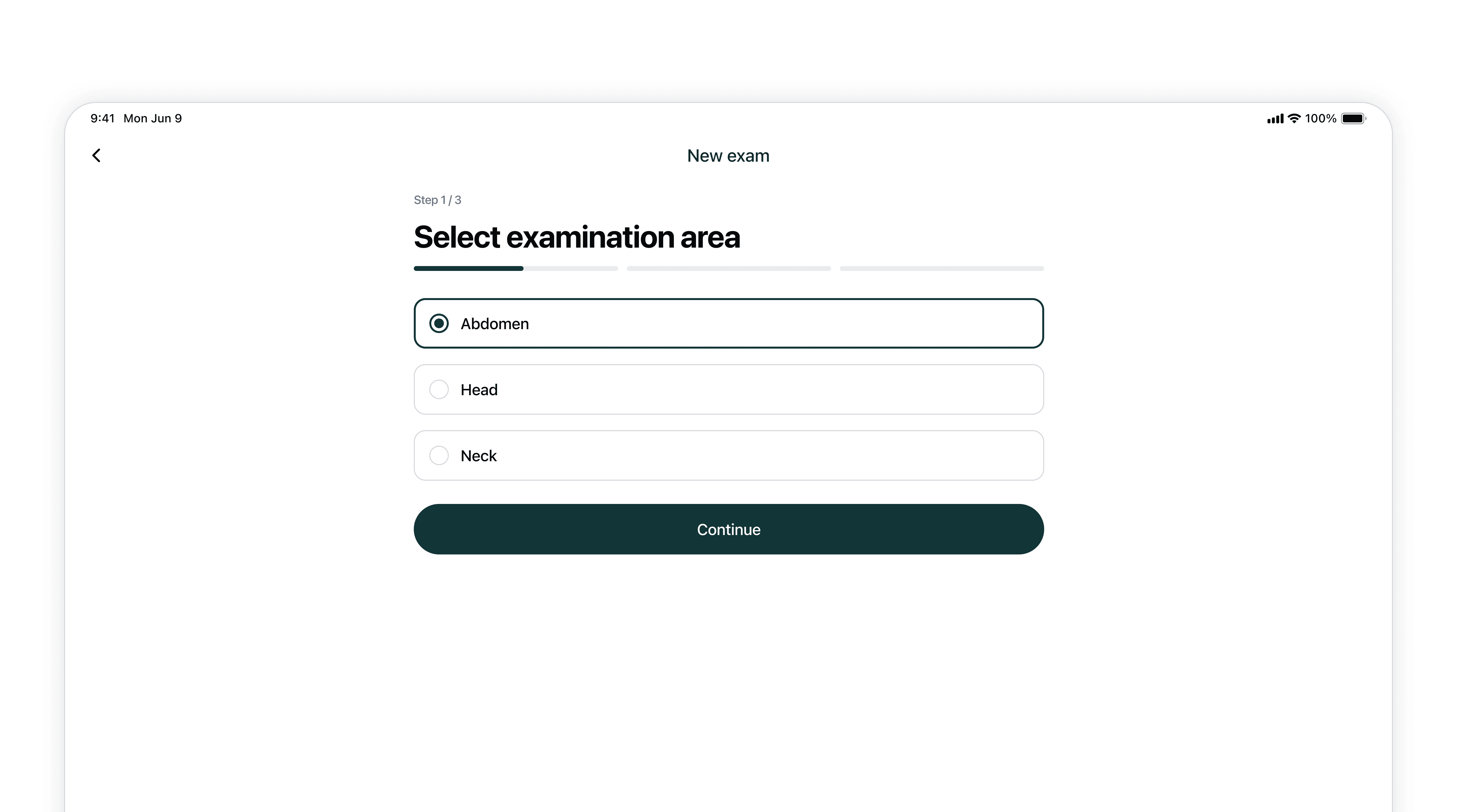 Reduced cognitive load during examinations. Simplified structure and guided inputs allow doctors to stay focused on patients