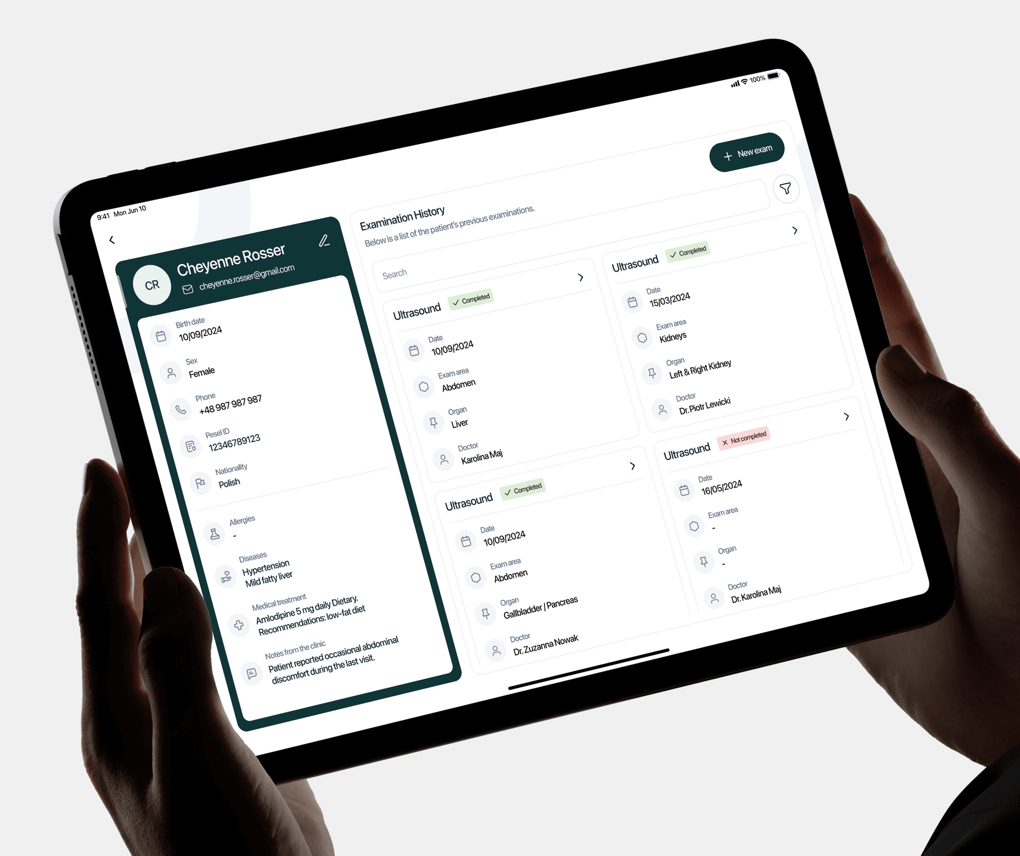 A licensed clinic app that helps doctors capture ultrasound parameters quickly and send structured data directly into an existing CRM.